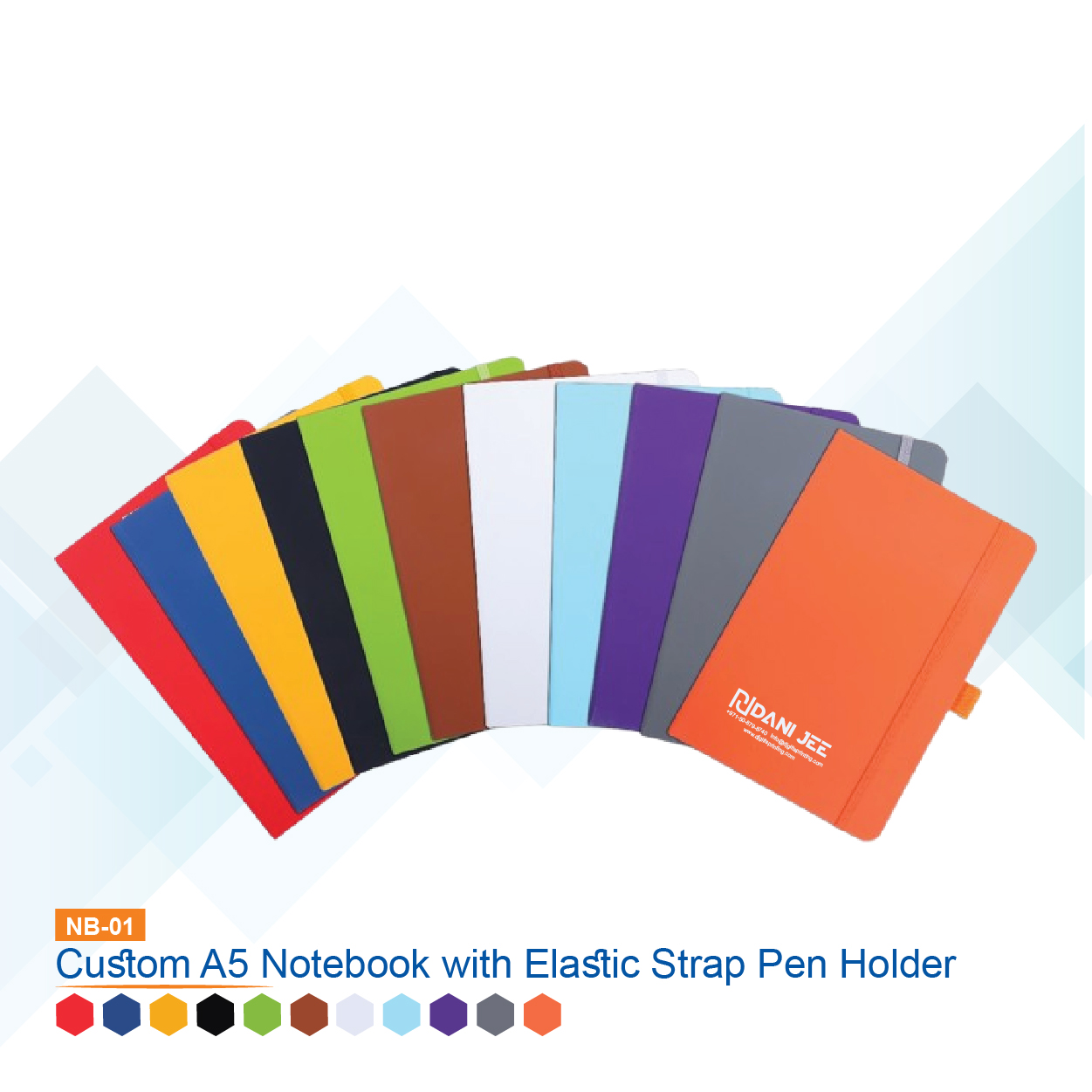 CUSTOM A5 NOTEBOOK WITH ELASTIC STRAP PEN HOLDER BASIC A5 NOTEBOOK PREMIUM LOCKABLE PU LEATHER NOTEBOOKS